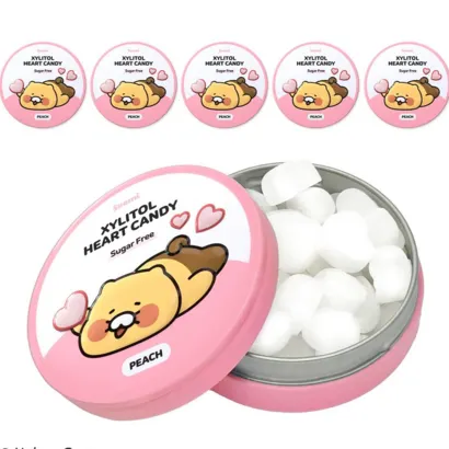 춘식이 자일리톨 하트 사탕 복숭아 무설탕 핀란드 수오미 캔디 아기 유아 양치, 40g, 6개